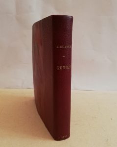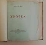 SUARÈS (A.). — Xénies.— Paris, Émile-Paul frères, 1923 ; in-12, demi-mar. rouge à coins, auteur et titre dor. sur le dos , tête dor., non rogné, couverture et dos (Ghiroux).