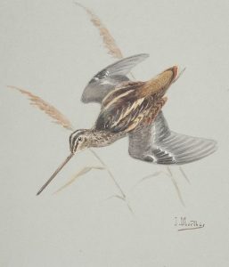 blanc), 4 planches, couverture illustrée. Broché, étui-boîte. Édition originale illustrée de nombreuses compositions dans le texte de Joseph Oberthür et de 4 photographies en noir hors texte de Laure Albin-Guillot. Tirage à 812 exemplaires numérotés réservés aux souscripteurs, celui-ci étant l’un des 100 sur Lafuma teinté. Exemplaire enrichi d’une AQUARELLE ORIGINALE DE JOSEPH OBERTHÜR représentant une bécasse.