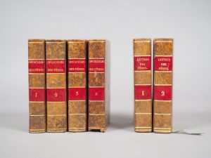 OPUSCULE DES PÈRES. Paris, librairie classique-élémentaire 1822-1823. (4 vol.). – LETTRES CHOISIES DES PÈRES. Paris, librairie classique-élémentaire 1824. (2 vol.). Ensemble 6 vol. in-16 en reliure uniforme, veau marbré, fil. dor. sur les plats et au dos, tr. dor. (Rel. d'époque). Anthologie de divers écrits des Pères de l'Eglise. Bel exemplaire, joliment relié.