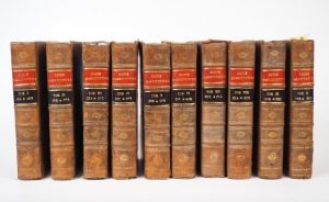 ROZIER (Abbé). Cours complet d'Agriculture théorique, pratique, économique et de médecine rurale et vétérinaire ou Dictionnaire universel d'agriculture. Paris, Rue et Hôtel Serpente, Delalain 1783-1801. 10 vol. in-4. Veau moucheté, roulette d'encadr. dor. fil. et fleur. dor. pces de titre (Rel. de l'époque).
