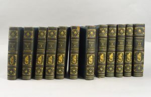 BUFFON. Œuvres complètes (avec la nomenclature linnéenne et la classification de Cuvier), annotées par Flourens. Paris, Garnier Frères 1853-1855. 12 vol. gd in-8. 1/2 chagrin vert, caissons ornés de fers animaliers (Rel. de l'époque)