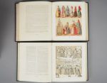 RACINET (A.). Le Costume historique. Types principaux du vêtement et de la parure. Cinq cent planches, trois cents en couleurs, or et argent, deux cent en camaïeu. Avec des notices explicatives, une introduction générale des tables et un glossaire. Paris, Firmin-Didot 1888. 5 vol. in-4. Reliure 1/2 chagrin vert foncé.