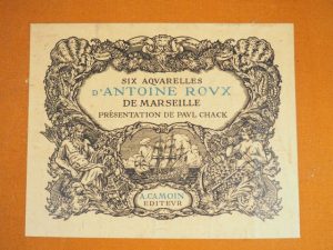ROUX (Antoine, de Marseille). Six aquarelles, présentation de Paul Chack. Editeur Camoin. 1929. in plano, chemise toilée. 6 belles reproductions de fac similés de Marine tirée à 200 ex. numérotés. Chemise endommagée et mouillures.