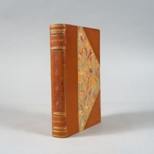 SAND (George). Mauprat. Dix compositions par Le Blant, gravée à l'eau-forte par H. Toussaint. Paris, Quantin 1881. in-8. 1/2 chagrin havane à coins, décor floral frappé à froid avec de petites fleurs mosaïquées en rouge, tête dor., couv. et dos cons.
