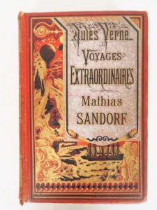 VERNE (Jules): Mathias Sandorff. Hetzel 1885. Percaline rouge à la bannière argenté (défraichi, rousseurs)