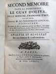 •9. Second Mémoire pour la demoiselle Le Guay d'Oliva. Paris, Simon et Nyon, 1786. 56 p. (déchirure en marge du dernier f.).