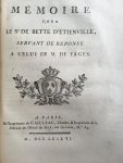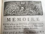 •12. Mémoire pour le Sr de Bette d'Étienville, servant de réponse à celui de M. de Fages. Paris, Cailleau, 1786. [1] f., 30 p. (brunissure et accroc p.27-28 sans atteinte au texte).