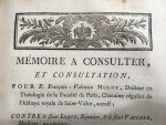 •14. Mémoire à consulter, et consultation, pour F. François-Valentin Mulot. Paris, Demonville, 1786. 48 p.