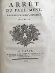 •15. Arrêt du Parlement, la grande chambre assemblée. Du 31 mai 1786. A Paris, Cl. Simon, 1786. 20 p.