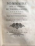 •6. Sommaire pour la Comtesse de Valois-La Motte. Paris, L. Cellot, 1786. 62 p. (déchirure au dernier f. avec petit manque en marge sans perte au texte).