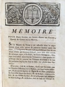 •1. Mémoire pour dame Jeanne de Saint-Rémy de Valois, épouse du Comte de la Motte. Paris, Imp. L. Cellot, 1785. 46 p.