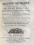 •8. Second mémoire pour la demoiselle Le Guay d'Olivia, fille mineure, émancipée dâge, accusée ; contre M. le procureur général, accusateur ; en présence de M. le cardinal-Prince de Rohan, de la dame de La Motte-Valois, du sieur Rétaux de Vilette, du sieur de Cagliostro, & autres ; tous co-accusés. Analyse et résultat des récolemens et confrontations. A Paris, chez P.G. Simon & N.H. Nyon, 1786. [2] f., 56 p.