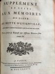 •9. Supplément et suite aux Mémoires du sieur de Bette d'Etienville, ancien chirurgien sous-aide-major, pour servir de Réponse aux différens Mémoires faits contre lui. A Paris, Imp. André-Charles Cailleau, 1786. [1] f., 69 p.