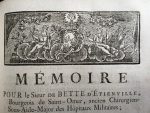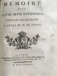 •10. Mémoire pour le S[ieu]r de Bette d'Etienville, servant de Réponse à celui de M. de Fages. A Paris, Imp. Cailleau, 1786. [1] f., 30 p.