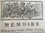 •14. Mémoire pour les sieurs Vaucher, horloger, & Loque, bijoutier, accusateurs ; contre le sieur Bette d'Etienville, le baron de Fages-Chaulnes, & autres accusés, en présence de Monsieur le procureur-général. A Paris, Imp. Prault, 1786. 88 p.