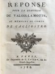 •2. Réponse pour la Comtesse de Valois-La Motte au Mémoire du Comte de Cagliostro. A Paris, Imp. L. Cellot, 1786. 48 p.