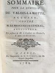 •3. Sommaire pour la Comtesse de Valois-La Motte, accusée ; contre M. le Procureur-général, accusateur ; en présence de M. le cardinal de Rohan & autres co-accusés. A Paris, Imp. L. Cellot, 1786. 62 p.