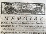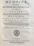 •5. Requête à joindre au Mémoire du Comte de Cagliostro. Paris, Imp. de Lottin l'aîné & de Lottin de S. Germain, Mai 1786. 11 p.