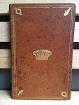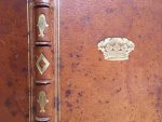 doré bordant les plats, avec les mêmes pièces d'armes aux angles, et couronne frappée au centre, filet doré aux coupes, tête dorée, dentelle intérieure dorée (taches aux plats, papier ordinairement bruni).