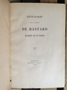 * [BASTARD]. — Généalogie de la famille de Bastard. — Barons de St-Denis. — Morges, Imp. F. Trabaud, 1895. — In-8, 53 p., demi-percaline verte à la bradel, titre en long et filets dorés (coins frottés).