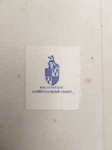 •Étiquette ex-libris Bibliothèque du Comte F. de Rohan-Chabot.