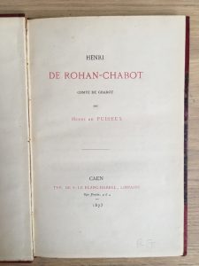 * PUISEUX (Henri de). — Henri de Rohan-Chabot, Comte de Chabot. — Caen, Typ. de Le Blanc-Hardel, 1873. — In-12, [2] f., 101 p., demi-basane rouge à coins époque, dos lisse, auteur et titre dorés en long, non coupé.