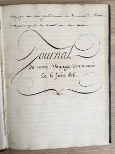 * [Manuscrit]. [ROHAN (Anne Louise Élisabeth de Montmorency, duchesse de)]. — Journal de mon voyage commencé le 6 juin 1816. — Petit in-4, [1] f., 108 p., [1] f. blanc, demi-cuir de Russie vert à bandes époque (taches aux plats, un coin...
