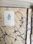 • Chabot (petite étiquette ex-libris gravée aux armes : 3 chabots, surmontés d'un heaume et d'une hure).