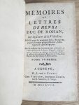 * ROHAN (Henri de). — Mémoires et lettres de Henri Duc de Rohan, sur la Guerre de la Valteline. — Publiés pour la première fois & accompagné de notes géographiques, historiques & généalogiques. — A Genève, chez Vincent, 1758. — 3 vol....