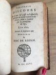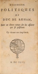 * ROHAN (Henri de). — Discours politiques du Duc de Rohan, faits en divers temps sur les affaires qui se passoient. — S.l., s.n., 1646. 146 p.