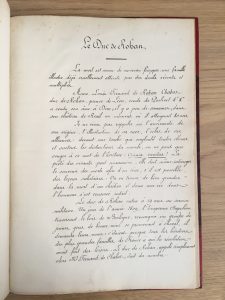 * [ROHAN-CHABOT (Anne L. F. de)]. — G [???] T (Vicomte de). — Le Duc de Rohan. 1869. — Petit in-folio, 8 p., demi-basane rouge à coins, titre doré en long [Gaëtan Ronner] (coins et coiffes frottés).