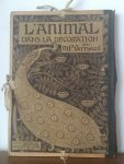 [Art Nouveau]. VERNEUIL (Maurice Pillard). — L'animal dans la décoration. — Paris, Librairie centrale des Beaux-Arts,. E. Levy, [1897]. — In-folio, chemise cartonnée éditeur illustrée, demi-toile noire, titre manuscrit en long, lacets...