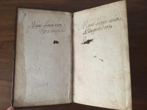 Ex-libris manuscrit daté de Vaugirard, 1769, sur les gardes.