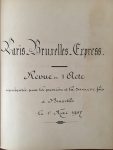 – [Manuscrit]. STERN (Jean). Paris-Bruxelles Express. Revue en 1 acte représentée pour la première et la dernière fois à Bruxelles le 1er Mai 1907. Revue 1907. Petit in-4 carré, 54 p. + 3 f. blancs, maroquin bleu, dos à 5 nerfs, auteur, titre, dates dorés, filets dorés au dos, 25 étoiles dorées au plat sup. double filet doré d'encadrement aux plats, double filet doré aux coupes, tranches dorées, large dentelle dorée intérieure [Vermorel] (piqures, petits frottements).