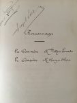 Sur la première garde, poème et envoi autographe signé J de Levavasseur, daté du 24 janvier 1913 "en souvenir de quelques jours charmants passés à Condé ". C'est vraisemblablement l'auteur du texte. Ne figure pas au catalogue BnF.