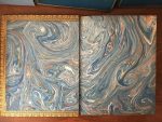 – [Manuscrit]. STERN (Jean). Compliment au Baron et à la Baronne Lambert à l'occasion de leurs vingt-cinq ans de mariage, [1] f., 12p. [Suivi de] William ou La confession d'un enfant d'un demi-siècle, 38 p. + 6p. vierges. [Vers 1907]. Petit in-4 carré, maroquin bleu, dos à 5 nerfs, auteur, titre, dates dorés, filets dorés au dos, semé d'étoiles dorées au plat sup., double filet doré bordant les plats, double filet doré aux coupes, tranches dorées, large dentelle dorée intérieure [Vermorel] (piqures, petits frottements).