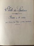 – [Manuscrit]. STERN (Jean), KARL-REILLE (baron). L'Ecole des Sportsmen. Revue en 2 actes. Petit in-4 carré, [2] f., 26 p., [1] f., 22 p., percaline bleue à la bradel, dos lisse, auteurs et titre dorés en long, 25 étoiles dorées au plat sup., couv. conservée aux 25 étoiles bleues.