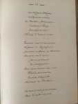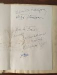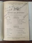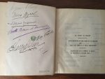 Couverture intérieure gravée en sépia nommant les 4 comédiens et portant leurs signatures manuscrites.