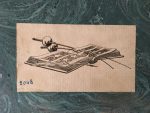 • [Manuscrit]. Marjolaine. 4f. in-4°, couv. et dernier f. reliés par 3 étoiles en papier adhésif, couv. avec un dessin au crayon noir d'une double volute croisées sous couronne.