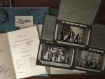 Enrichi du programme lithographié signé par l'auteur et les comédiens, monté sur onglet, de coupures de presse et de 4 épreuves argentiques montrant les auteurs et comédiens, contrecollées ou reliées sous marie-louise. Avec, volantes, 3 autres photographies de la troupe ; et un autre exemplaire du même programme.