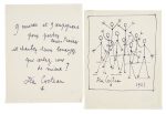 COCTEAU (Jean) — Dessin original signé. — 2 p. in-4 (dessin : 21 x 18 cm approx.).