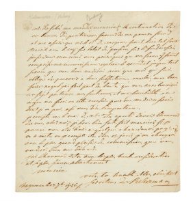 Lorsqu'il écrit cette lettre en 1786, le futur maréchal de camp est en proie à certaines difficultés financières et demande à son correspondant " la continuation de vos bonnes dispositions en faveur de mes pauvres sœurs. " Il ajoute : " ma reconnaissance égalera le grand et important service que vous leur renderai [sic] ainsi qua [sic] moi qui suis obligé de pourvoir à leur subsistance. "