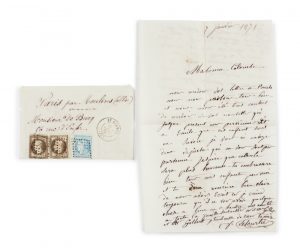 Lettre autographe signée " F. Lebourlier ", envoyée durant le siège de Paris par boule de Moulins.