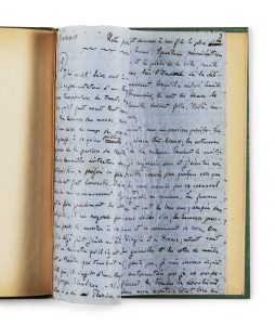 ZOLA (Émile) — Manuscrit autographe intitulé « Notes parisiennes ». — Paris, 22 juin [1876]. — 4 p. in-8 (21 x 13,6 cm) de papier surfin bleu, montées sur onglet et reliées en 1 vol. in-8, cartonnage bradel demi-vélin vert amande, dos...