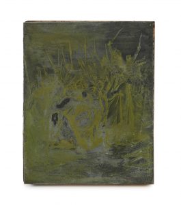 La matrice est conservée dans une boîte en carton avec un tirage collé sur le couvercle. Le support en bois est en partie calciné, sans dommage à la plaque métallique.