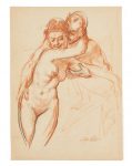Exemplaire enrichi d'un dessin original en sanguine et à la pierre noire, sur papier du Japon, signé, de Lobel-Riche (31,8 x 23,3 cm) : un couple enlacé.