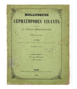 RISSO (Joseph Antoine) — Mollusques céphalopodes vivants observés dans le parage méditerranéen du comté de Nice. — Ouvrage posthume. — Nice, Imprimerie société typographique, 1854. — Pet. in-folio (38,5 x 30,1 cm), broché, couverture...