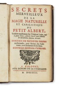 - ALBERT LE GRAND. Secrets merveilleux de la magie naturelle et cabalistique du Petit Albert. Cologne, aux dépens de la Compagnie, 1722. In-16 (13,3 x 7,2 cm), veau granité, dos à nerf orné de motifs dorés, pièce de titre rouge, (reliure de l'époque).