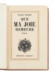 GIONO (Jean) — Que ma joie demeure. — Paris, Grasset, 1935. — Grand in-12 (18,8 cm x 12,7 cm), reliure janséniste, maroquin orangé à gros grain, dos lisse, cadre intérieur de même maroquin avec filet doré, doublures et gardes de papier...
