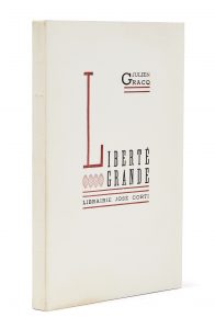 GRACQ (Julien) — Liberté grande. — Paris, José Corti, 1946. — In-12 (19,3 x 12 cm), broché, couverture en couleurs, chemise en demi-maroquin noir et étui (Boichot). — 117 p., [3] ff.